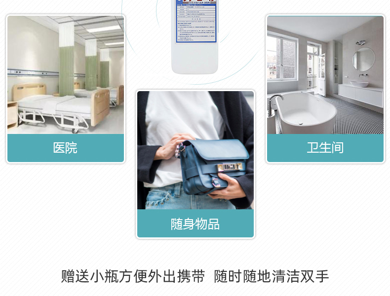 用途:日常生活工作中手指、皮膚殺菌消毒防感染,免洗,也可用于物品消毒