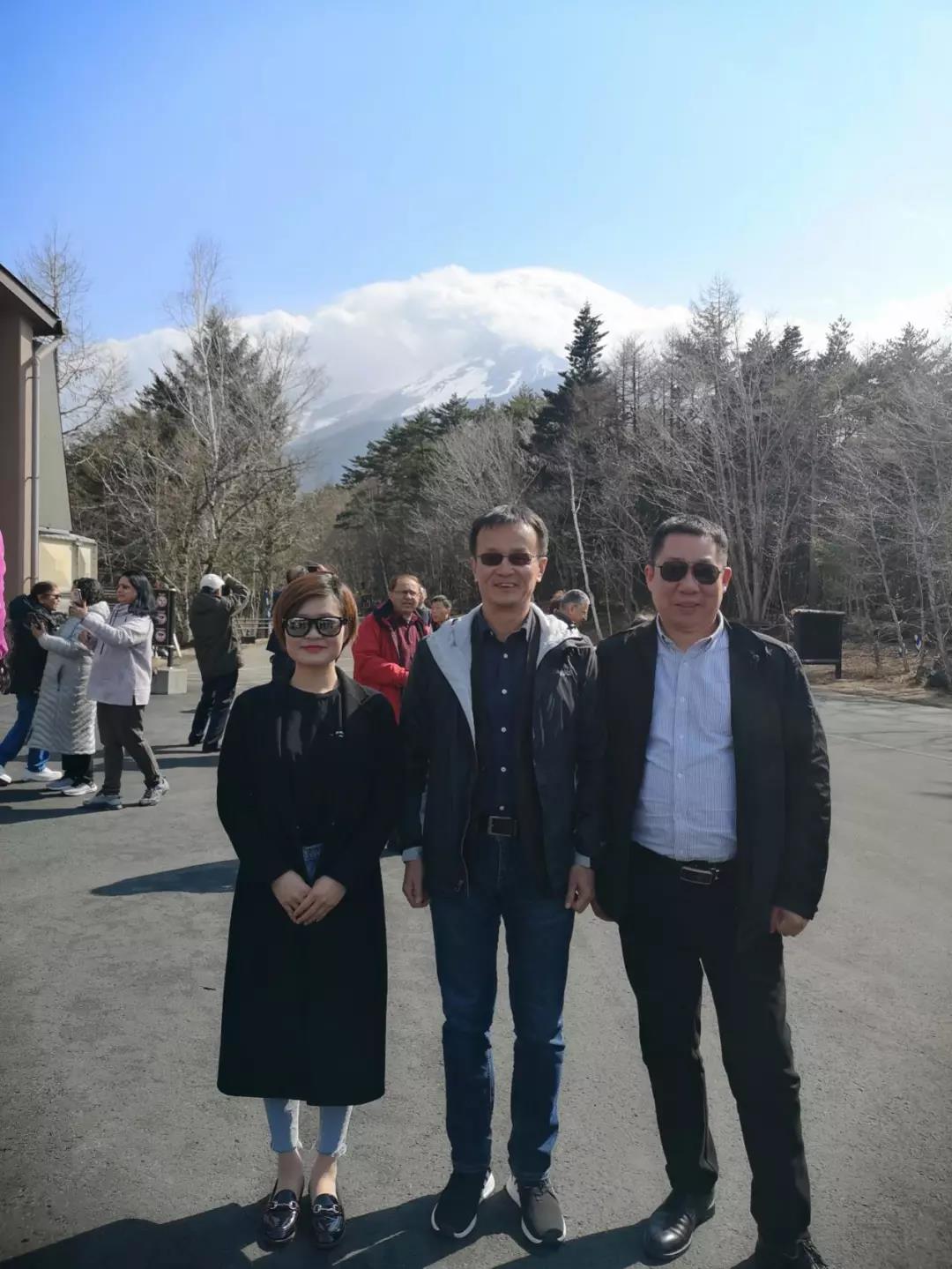 左起:荃芬鄭州服務商陳淼、荃芬杜煒東、荃芬無錫服務商趙宏在富士山下