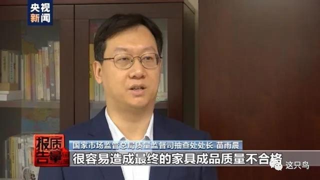 國(guó)家市場(chǎng)監(jiān)管總局質(zhì)量監(jiān)督司抽查處處長(zhǎng) 苗雨晨:企業(yè)的大部分原材料依靠外購(gòu),如果原材料質(zhì)量把關(guān)不嚴(yán),很容易導(dǎo)致最終的家具產(chǎn)品質(zhì)量不合格。比如使用了甲醛含量高的人造板,可能會(huì)造成家具產(chǎn)品甲醛超標(biāo),使用了不滿足要求的油漆,會(huì)造成家具的漆膜理化性能不合格。